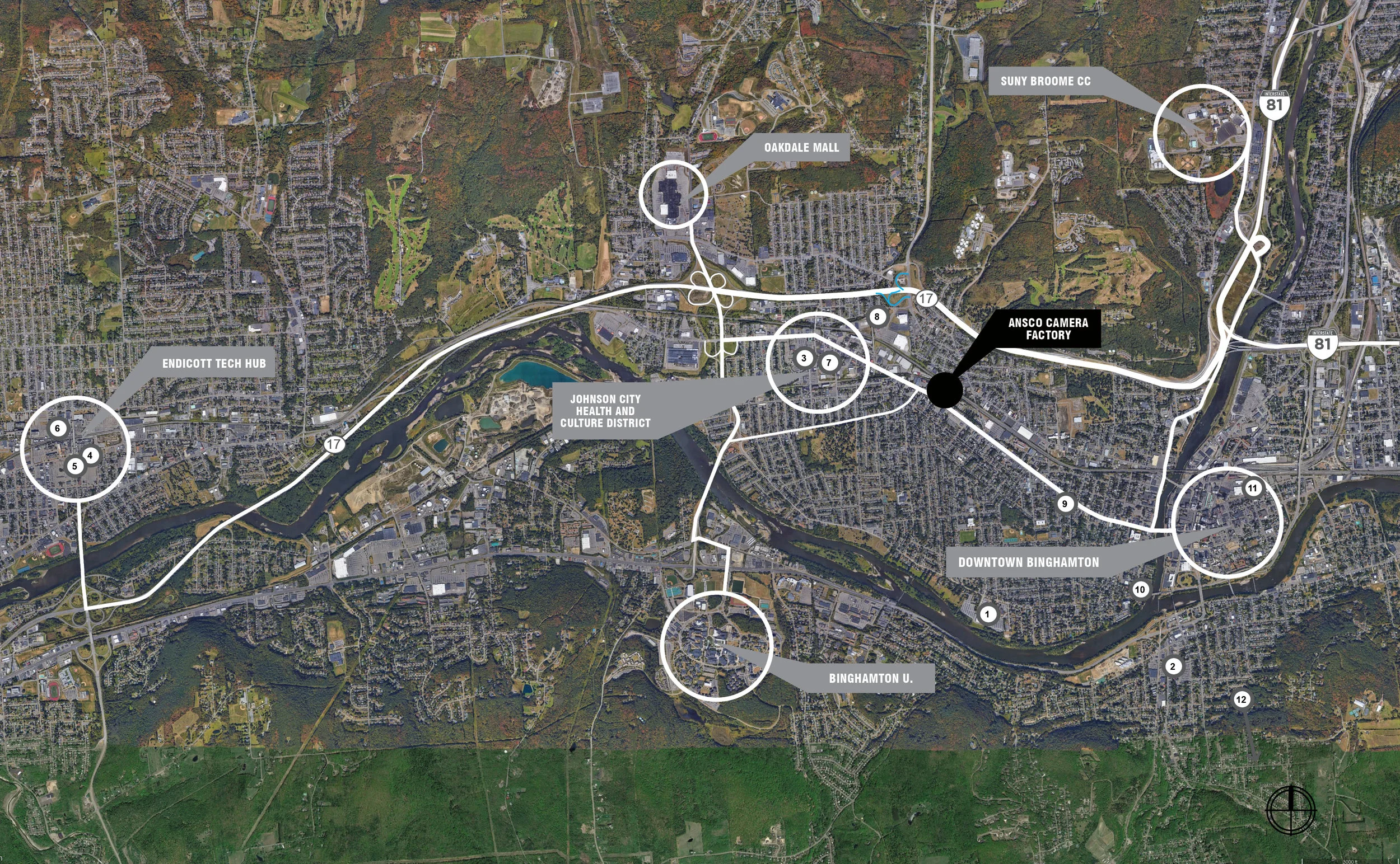 The Ansco Camera Factory is just minutes outside of Downtown Binghamton and Downtown Johnson City providing an ease of access onto Route 17 and Interstate 81. Our building is steps from Binghamton University’s Johnson City campus and United Health Services Johnson City campus.